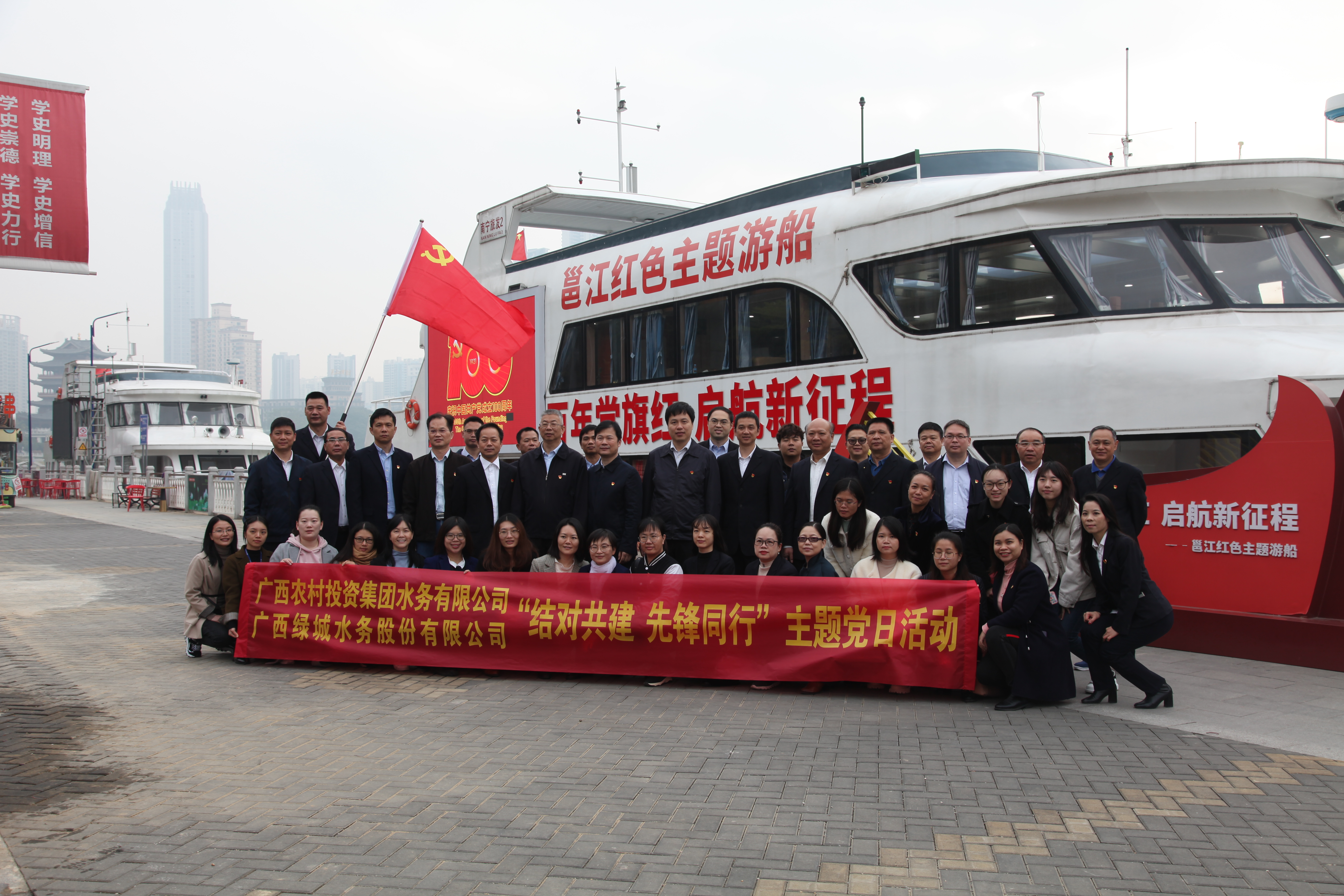 一百年前,中國(guó)共產(chǎn)黨在嘉興南湖的“紅船”上誕生。一百年后,為深入學(xué)習(xí)黨的百年奮斗歷程,開(kāi)啟水務(wù)企業(yè)共建共謀、共治共享的新篇章,12月15日,廣西綠城水務(wù)股份有限公司第一黨支部和廣西農(nóng)村投資集團(tuán)水務(wù)有限公司第一、第二黨支部以聯(lián)合共建的方式,在邕江紅色主題游船上開(kāi)展“結(jié)對(duì)共建 先鋒同行”主題黨日活動(dòng)。廣西農(nóng)投集團(tuán)副總經(jīng)理陳遠(yuǎn)程、南寧建寧水務(wù)集團(tuán)總會(huì)計(jì)師陳大任、農(nóng)投集團(tuán)和農(nóng)投水務(wù)公司、農(nóng)投鄉(xiāng)村建設(shè)公司、綠城水務(wù)公司的領(lǐng)導(dǎo)班子成員也以普通黨員的身份參加了本次活動(dòng)。