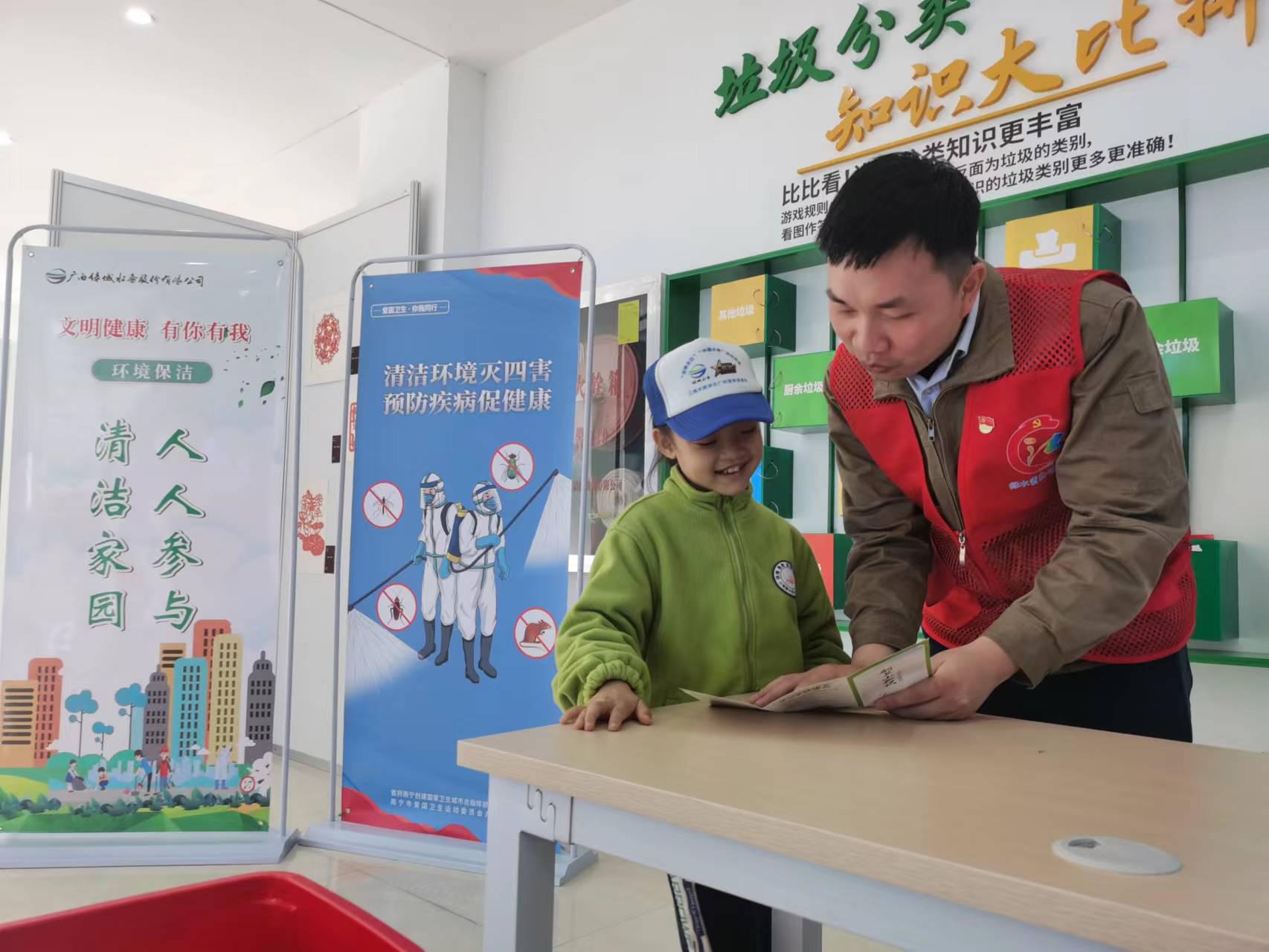 講解員和小學生一起學習創衛小知識
